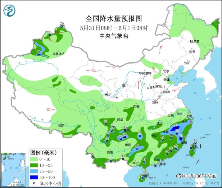 明后两天(6月1日至2日),贵州、广西、湖南、江西、福建、浙江等地的部分地区有大到暴雨,局部地区有大暴雨。预计降水最强时段为1日夜间至2日白天。
