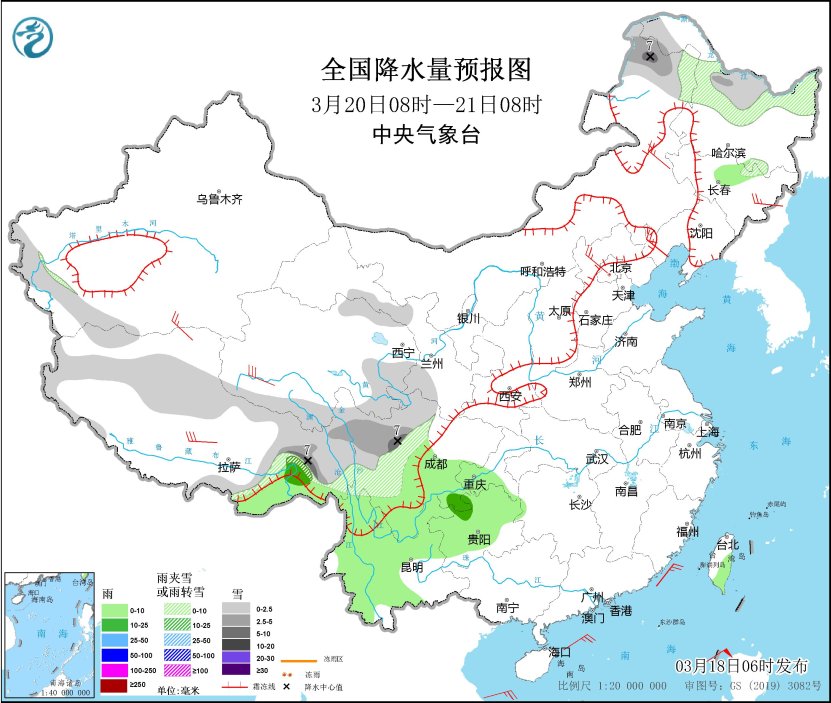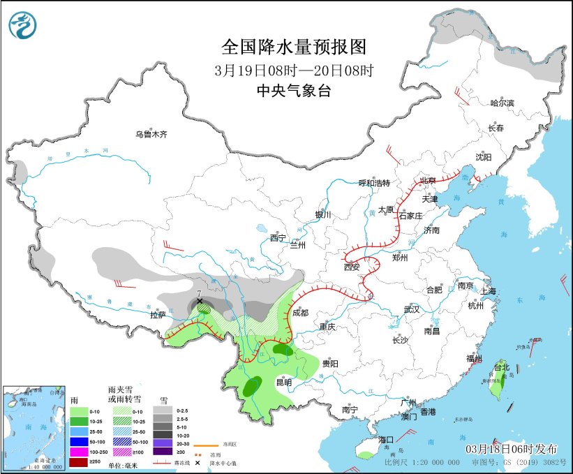 3月18日至23日,西藏东部、青海南部、川西高原、云南北部等地有小到中雪或雨夹雪,局地有大到暴雪;西藏东南部、四川盆地、贵州、云南中南部等地有小到中雨,局地有大雨。