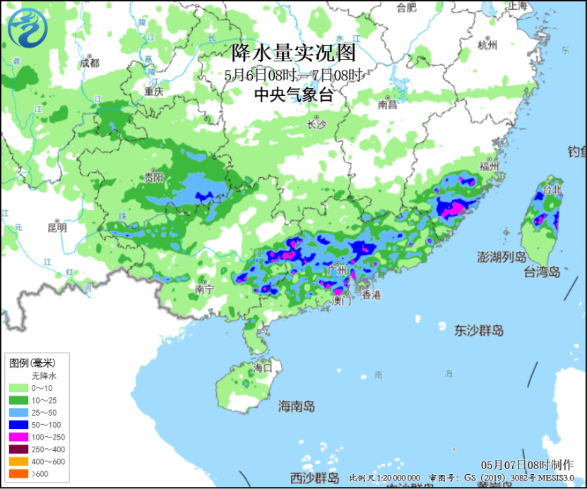 昨日,强降雨区分散在西南及华南地区,福建东南部、广东中东部、广西东部和西北部、贵州东南部及台湾岛中北部等地部分地区出现大雨或暴雨,福建厦门和漳州、广东深圳和江门、广西梧州和玉林等局地大暴雨(100~181毫米)。