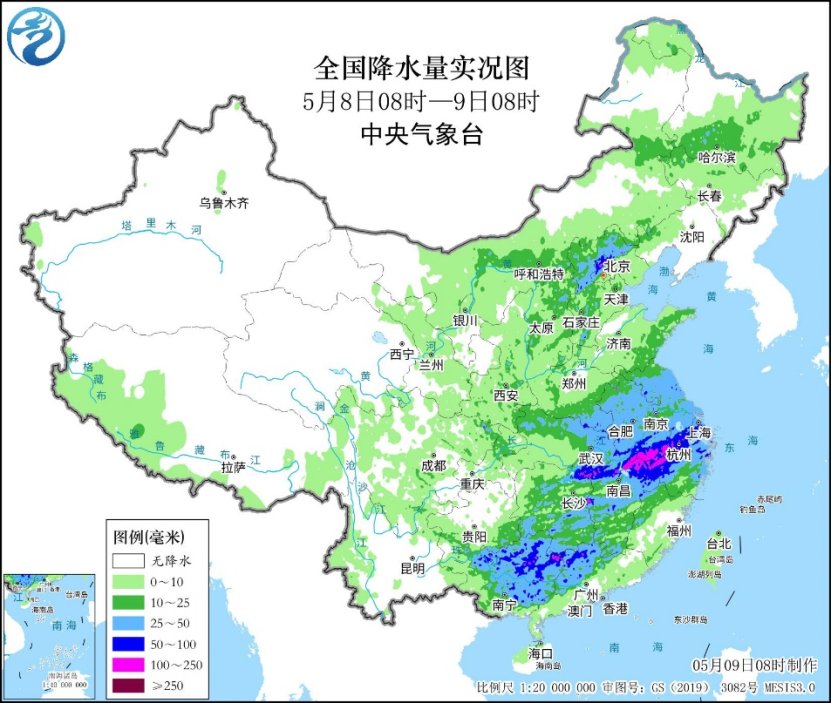 昨日,我国中东部地区降水范围广,气象监测显示,长江中下游至广西、广东北部一带普遍出现大到暴雨,安徽黄山、湖北咸宁、浙江杭州和衢州、江西景德镇和上饶、湖南永州、广西贺州和桂林、广东清远等局地大暴雨(100~218毫米);山西东北部、河北北部和东南部、北京西部和北部、黑龙江西南部等地部分地区出现大雨或暴雨,北京怀柔、河北承德等局地大暴雨;降雨期间还伴有强对流天气,上述地区最大小时降雨量40~80毫米,广西柳州局地96毫米,湖南东部、江西西部、广西北部等地局地出现雷暴大风。