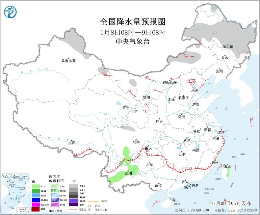 预计今天,内蒙古中东部、黑龙江、新疆北部等地部分地区有小雪;四川南部、云南中东部和西南部、台湾岛东部等地部分地区有小雨。受冷空气影响,甘肃西部、内蒙古西部有扬沙或浮尘天气,局地有沙尘暴。