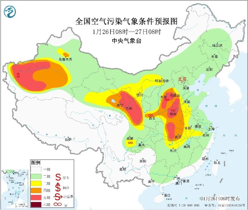 华北黄淮等地仍有霾天气。26日至28日,华北中南部、黄淮中西部、汾渭平原等地大气扩散条件转差,有轻至中度霾,部分地区重度霾。29日起,受冷空气和降水共同影响,霾天气逐渐减弱消散。