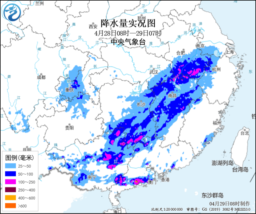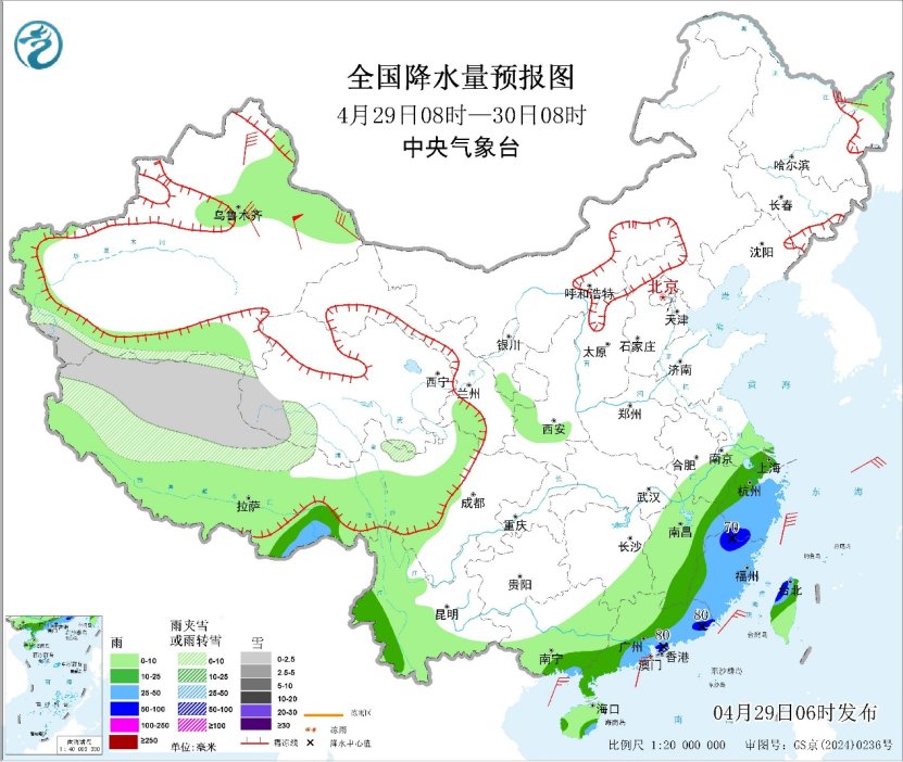 今天,南方强降水范围显著减小,强度明显减弱。但浙江南部、福建北部、广东东南部、台湾岛北部等地部分地区仍有暴雨(50~80毫米),并伴有短时强降水。此外,尤其要关注广东中南部、海南岛西南部等地局地可能出现8级以上雷暴大风或冰雹天气。