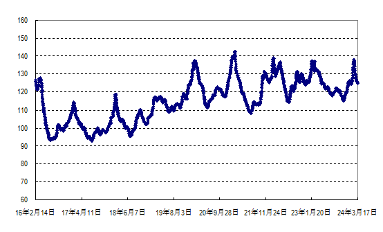 据农业农村部监测,2024年第11周(2024年3月11日—3月17日,下同)“农产品批发价格200指数”为125.35(以2015年为100),比前一周降0.98个点,同比低6.26个点;“‘菜篮子’产品批发价格200指数”为126.85(以2015年为100),比前一周降1.15个点,同比低7.07个点。