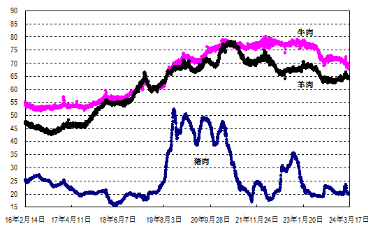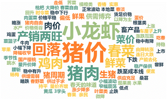 1.猪肉、鸡蛋价格止跌略涨,牛羊肉小幅下跌。猪肉批发市场周均价每公斤20.10元,环比涨0.5%,同比低2.3%;牛肉每公斤68.71元,环比跌0.5%,同比低10.7%;羊肉每公斤63.99元,环比跌0.7%,同比低7.0%;白条鸡每公斤17.78元,环比涨0.6%,同比低2.9%。鸡蛋批发市场周均价每公斤8.65元,环比涨2.2%,同比低17.5%。