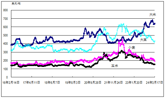 国际大宗农产品周均价格走势图(2016年2月至今)