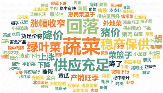 3.蔬菜均价小幅回落。重点监测的28种蔬菜周均价每公斤6.06元,环比跌0.7%,为连续9周上涨后首次回落,同比高16.3%。分品种看,15种蔬菜价格下跌,2种持平,11种上涨,其中,黄瓜、油菜和西葫芦价格环比分别跌9.6%、8.1%和6.3%,其余品种价格跌幅在5%以内;大白菜和洋白菜价格环比基本持平;青椒和葱头价格环比分别涨10.4%和6.0%,其余品种价格涨幅在5%以内。