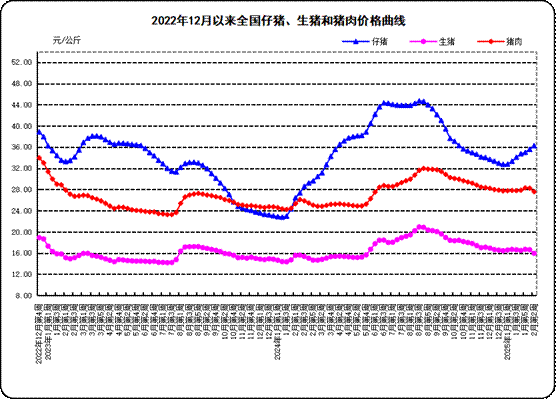 生猪产品价格。全国仔猪平均价格36.25元/公斤,比前一周上涨2.0%,同比上涨26.9%。河北、宁夏、新疆、天津、黑龙江等26个省份仔猪价格上涨,海南、内蒙古、青海等3个省份仔猪价格下跌。华中地区价格较高,为37.78元/公斤;西南地区价格较低,为34.73元/公斤。全国生猪平均价格15.94元/公斤,比前一周下跌4.2%,同比上涨3.8%。全国30个监测省份生猪价格均下跌。西南地区价格较高,为17.15元/公斤;东北地区价格较低,为15.44元/公斤。全国猪肉平均价格27.58元/公斤,比前一周下跌2.3%,同比上涨6.7%。全国30个监测省份猪肉价格均下跌。华南地区价格较高,为29.74元/公斤;东北地区价格较低,为24.16元/公斤。