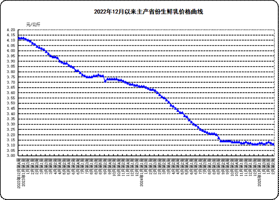 生鲜乳价格。内蒙古、河北等10个主产省份生鲜乳平均价格3.11元/公斤,比前一周下跌0.3%,同比下跌14.1%。