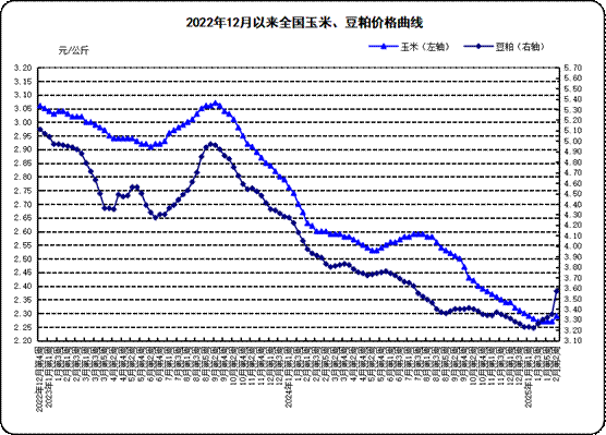 饲料价格。全国玉米平均价格2.29元/公斤,比前一周上涨0.9%,同比下跌11.9%。主产区东北三省玉米价格为2.10元/公斤,比前一周上涨0.5%;主销区广东省玉米价格2.44元/公斤,比前一周下跌0.4%。全国豆粕平均价格3.57元/公斤,比前一周上涨6.6%,同比下跌8.7%。育肥猪配合饲料平均价格3.37元/公斤,比前一周上涨0.9%,同比下跌8.2%。肉鸡配合饲料平均价格3.49元/公斤,比前一周上涨0.9%,同比下跌7.7%。蛋鸡配合饲料平均价格3.20元/公斤,比前一周上涨0.9%,同比下跌8.3%。