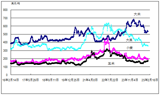 国际大宗农产品周均价格走势图(2016年2月至今)
