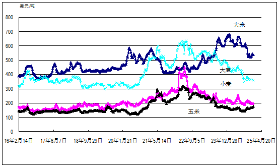 国际大宗农产品周均价格走势图(2016年2月至今)