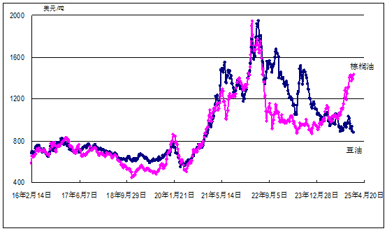 1. 豆油、大豆、玉米和小麦价格环比上涨。美国芝加哥商品交易所豆油、大豆、玉米和小麦最近期货合约收盘周均价每吨分别为1073美元、381美元、190美元和201美元,环比分别涨6%、3%、2%和1%,同比分别高9%、低10%、高12%和持平。