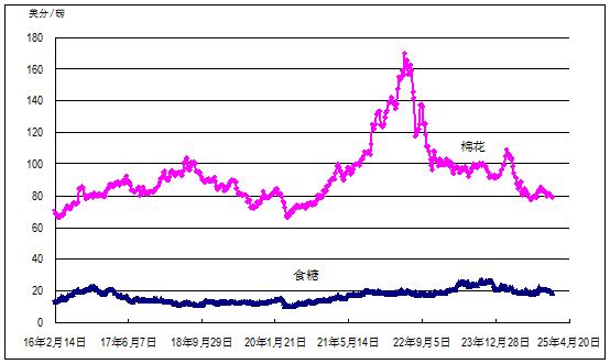 2.棉花价格环比基本持平。国际棉花价格指数(SM级)每磅76.46美分(每吨1686美元),环比基本持平,同比低19%。