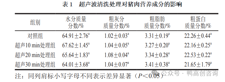 3.3 超声波清洗处理对猪肉品质的影响