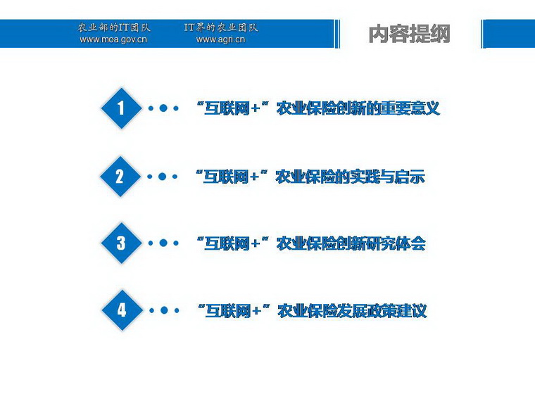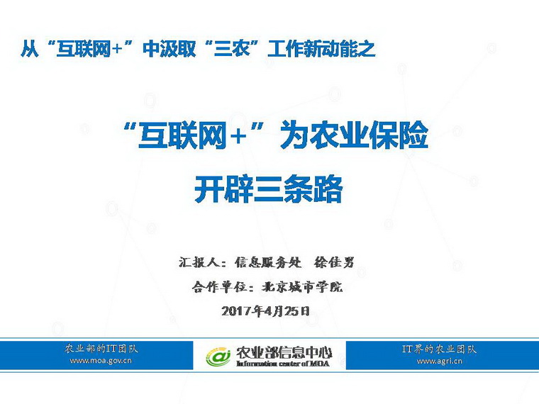 (三)推进融合发展。一是基于国家农业数据中心,加快涉农信息资源整合,逐步完善涉农基础信息资源库建设;深化农业保险与信息进村入户、“12316”综合信息服务平台等项目的融合,利用保险机构提供的保费返点,有效增强基层信息服务体系的稳定性与活力。二是深化与农业风险研究学会及银行、期货、证券等金融机构合作,利用互联网思维、金融工程学等,将农业风险与其他投资要素进行组合,实现农业保险产品由金融消费品向金融增值服务的转变及农业风险向金融市场的转移、分散,从而更有效地防控和化解农业风险。