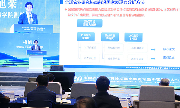 11月20日,2020中国农业农村科技发展高峰论坛暨中国现代农业发展论坛在江苏南京举行,中国农业科学院发布2020全球农业研究热点前沿报告,分析了农业8大学科的研究热点前沿发展趋势,全面评估了中国、美国、澳大利亚、加拿大、英国、意大利等10个世界主要国家在农业领域、农业各学科领域以及各热点前沿中的研究活跃程度及表现力。