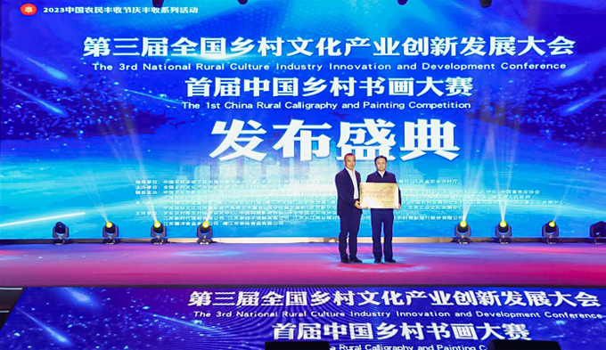 本网讯 12月8日,中国乡村发展协会联合中共靖江市委员会、靖江市人民政府、中国农业电影电视中心、农民日报社、中国农业出版社、中国农村杂志社、写生中国油画俱乐部在江苏靖江市举办2023中国农民丰收节系列活动·首届中国乡村书画大赛发布盛典和获奖作品展,见证了来自全国各地优秀书画创作者的才华,一幅幅精美作品展现了中国乡村文化的独特魅力,不仅让大家欣赏到了美丽的艺术,看到了新时代乡村的发展变化,也感受到了艺术家们对艺术锲而不舍的热爱和精益求精的风采。
