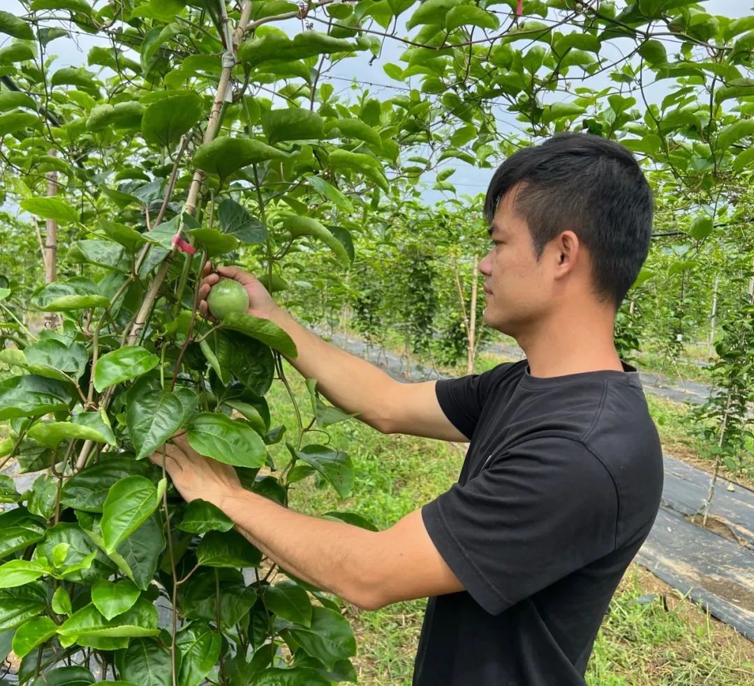 永培村百香果种植基地的负责人黄杰锋介绍说:“我们种植的是‘钦蜜9号’黄金百香果,这个品种汁水丰富、清甜爽口,营养价值高,广受群众喜爱,市场销量可观。我们这里建设有全自动浇水和施肥系统,能精准把控用量,不仅节约了生产和人工成本,也能保证优质果的产出率在85%以上,且亩产达到2500斤左右。目前分销各地的百香果价格在每斤12元,扣除生产、人工和运输成本,综合利润率能达到60%左右。”