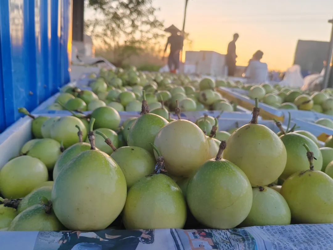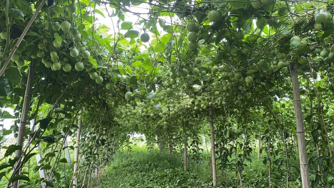据了解,由于市场需求量大,该基地在收成时期日采摘量为2万斤左右,高峰期能达到5万斤左右。人工采摘增加了工作岗位,带动村里100多户人口实现家门口就业稳增收。且“基地+市场”的经营模式,直接从产地分销各地,保证了百香果的销量,极大地减少了农产品滞销的现象。