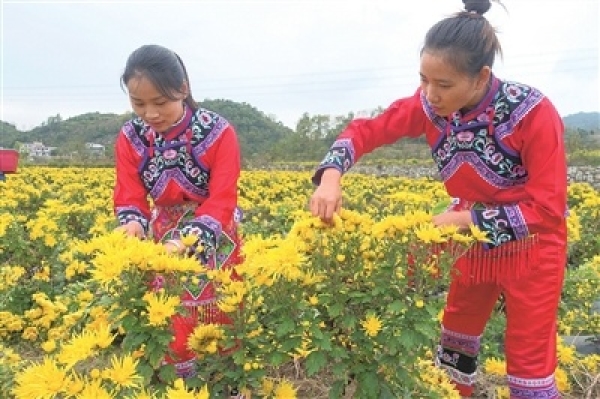 时下,贵州省黔南布依族苗族自治州福泉市龙昌镇枫香树村种植的金丝皇菊迎来了最佳采摘期,一朵朵饱满绽放的菊花成为乡村里一道靓丽风景,给群众带来实实在在的“真金白银”,成为群众的“致富花”。