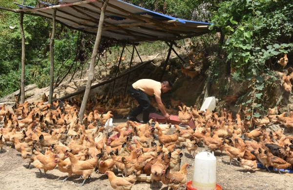 在罗启富的带动下,林荫村目前养殖“跑山鸡”2000羽,实现增收创收20余万元。