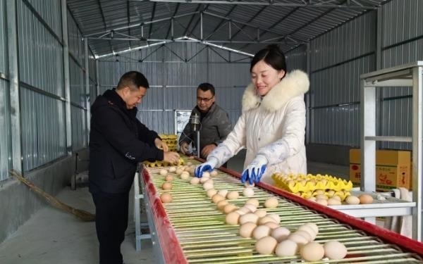 如今,五马镇龙里村蛋鸡养殖厂已成为集养殖、鸡蛋销售、副产品鸡粪加工为一体的养殖业。随着蛋鸡产业的蓬勃发展,也逐渐“辐射”到周边更多的农户。“养鸡场扩建后需要人手,在钟进芬的介绍下,我就来这里捡鸡蛋,一天能捡几十箱,有一百多元钱。”龙里村村民苏美说。