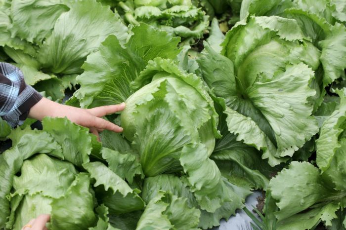 “普通生菜是散叶,呈深绿色或绿色,而结球生菜产量更高、口感脆嫩,球叶呈浅黄色或淡绿色,特别适合像华莱士这样的加工企业。今天我们在田里测了一下,最重的可以达到700多克,一般的也能达到400克左右,还会继续生长。”陈家秀蹲下身,扒开一棵生菜向种植农户解释道。