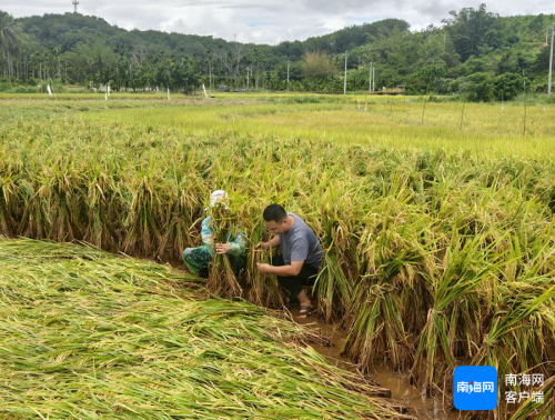 南海网10月29日消息(记者 利声富)“这些即将成熟的水稻,除了及时排水外,还要将倒伏的水稻捆绑成束扶起来。”29日上午,三亚市育才生态区,三亚市热带农业科学研究院的技术人员陈灿蹲在田里,指导农户如何做好强降雨后水稻田间管理。当天,三亚市农业农村局派出的技术人员分别深入水稻田、瓜菜地等开展灾后复产专业技术指导,帮助农户做好灾后农作物管理。