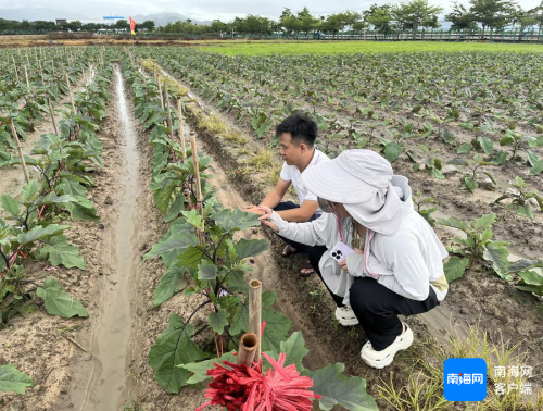 10月29日,三亚市热带农业科学研究院崖州基地主管刘勇等深入地头,为瓜菜种植户提供灾后恢复生产的指导和帮助。