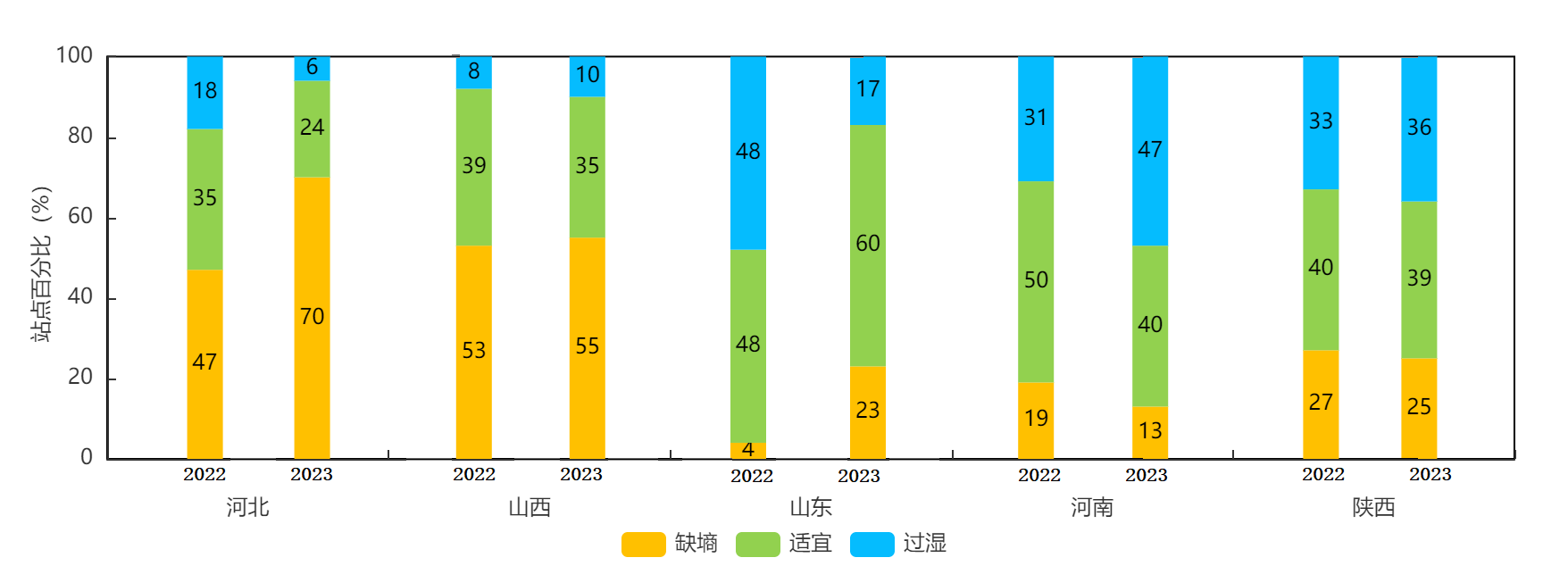 图1 2023年10月10日冬小麦主产省墒情与上年同期对比