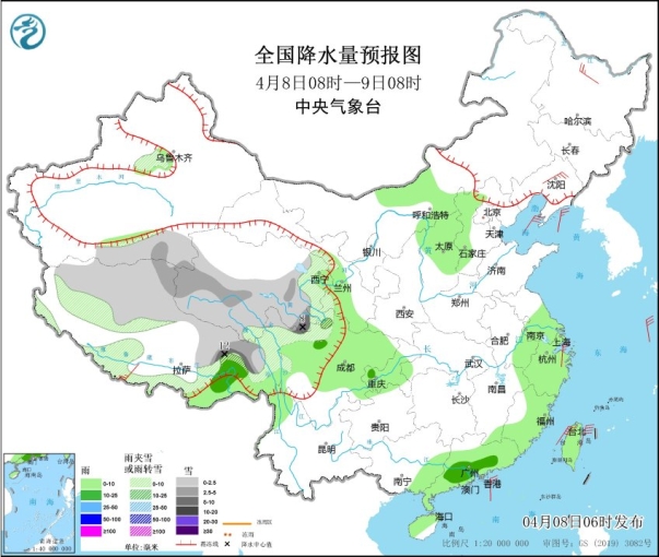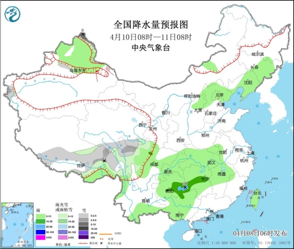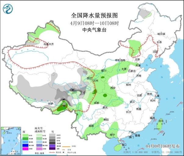 另外,8日至10日,青藏高原中东部将出现持续性雨雪天气,其中西藏东部、青海东部和南部、川西高原等地有中到大雪(雨夹雪)、局地暴雪。建议上述地区公众注意防范雨雪及低能见度天气对交通出行的不利影响。