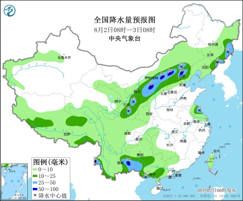 预计今天白天到夜间,甘肃东部和南部、宁夏大部、陕西北部、山西北部、内蒙古中部、河北北部、北京、天津及黑龙江东南部、吉林东部、江苏中部、贵州南部、广西西部和南部、云南西部和东南部等地部分地区有中到大雨,其中,陕西北部、山西北部、内蒙古中部、河北北部、云南东南部等地部分地区有暴雨(50~90毫米)。西北地区东部、华北中北部等地的部分地区将有8级以上雷暴大风或冰雹天气。