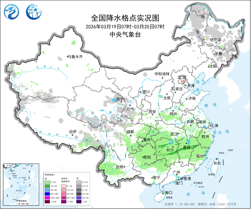 昨日以来,江南等地出现小雨,湖南中部、江西中部等地中雨;新疆南疆西部山区、内蒙古东北部及东北地区中北部、青藏高原东部出现小雪或雨夹雪,局地中雪。未来两天,贵州东部、江南及华南北部等地仍持续阴雨天气,西藏西部和南部雨雪增强,请上述地区公众持续关注气象预报预警信息,外出注意路面湿滑和交通安全。