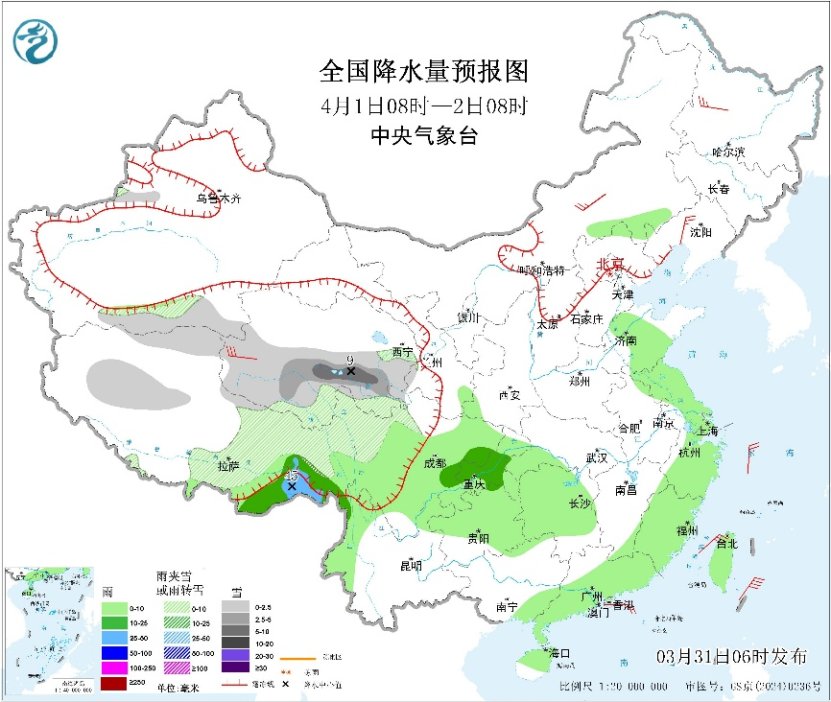 4月1日,江南、华南一带的降雨将短暂减弱,部分地区有小雨。4月2日,南方地区的降雨将再度增强,江南、华南、江淮南部及西南地区东部还将有一次强对流降水过程,请公众关注预报、预警信息。
