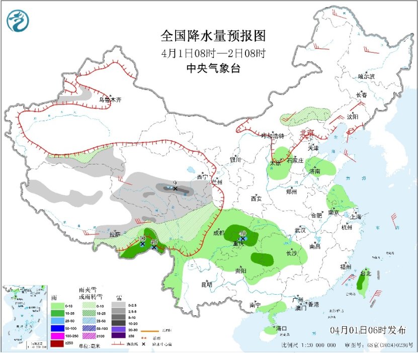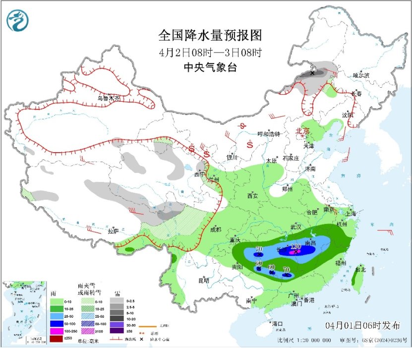 2日起江南华南又有降雨及强对流天气。今天(4月1日),江南、华南等地降雨暂歇,不少地方将转为晴好天气,阳光重现。短暂间歇过后,明天,南方地区的降雨及强对流天气又将发展起来,预计2日至4日,贵州、江南、华南及西藏东南部等地部分地区有大雨或暴雨,其中,江南中部等局地有大暴雨,部分地区伴有短时强降水、雷暴大风或冰雹等强对流天气。