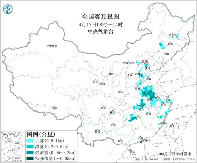 气象监测显示,17日早晨,京津冀、山东、河南、安徽、湖北、湖南等多地出现大雾天气,上述部分地区有能见度不足200米的强浓雾。中央气象台17日早晨继续发布大雾黄色预警:预计17日早晨至上午,北京东南部、天津西部、河北中南部、河南北部和东部、安徽、湖北东部、湖南中部、浙江北部和东南部、福建东部等地部分地区有大雾,局地有能见度不足200米的强浓雾。建议驾车出行公众密切关注最新天气和交通信息,提前规划行程,行车谨慎慢行,注意保持安全车距。
