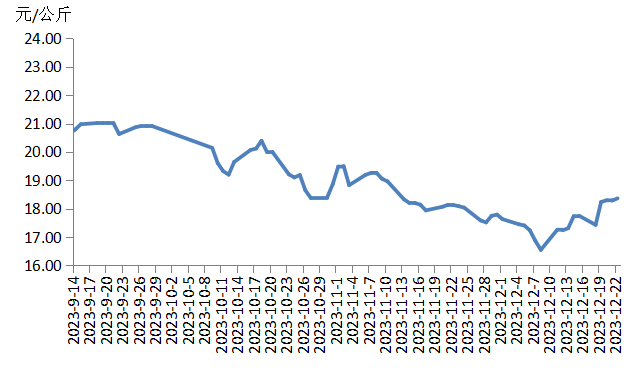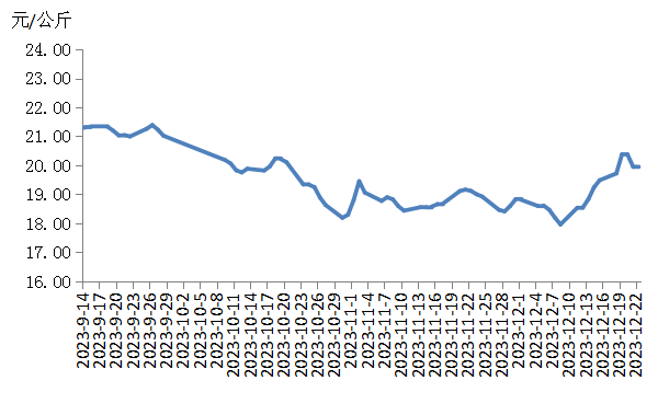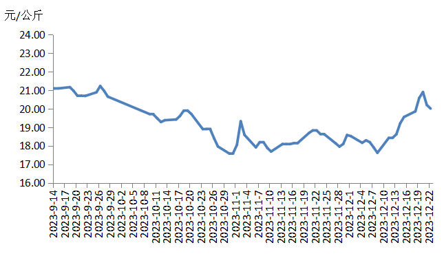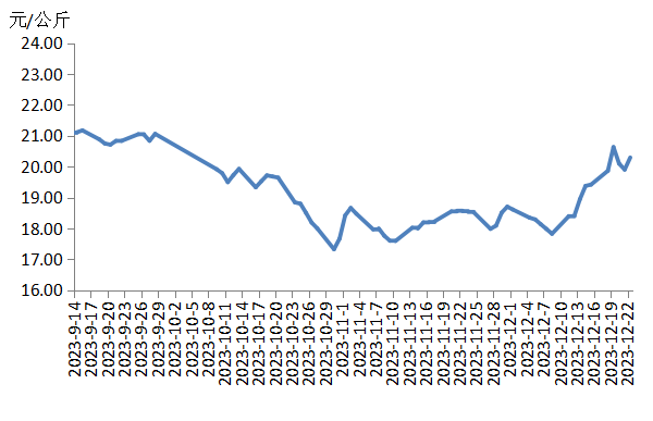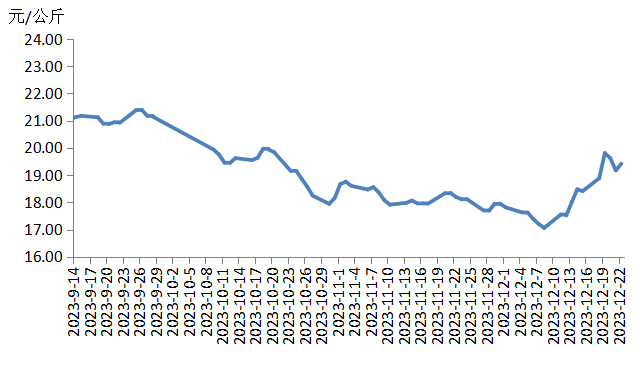 本周国内瘦肉型白条猪肉出厂价格(以下简称“猪肉价格”)环比上涨,周内先涨后跌。周前期腌腊制作和灌香肠活动旺盛,加之多地备货冬至,提振终端采购需求,白条猪肉销售速度加快,价格持续上涨。仅周末期因备货结束后需求减弱,叠加低价冻品猪肉涌入市场,带动白条猪肉价格小幅回落。
