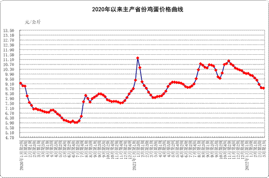 蛋鸡主产省份统计范围:河北、山西、辽宁、吉林、黑龙江、江苏、安徽、山东、河南、陕西。 |
