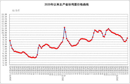 蛋鸡主产省份统计范围:河北、山西、辽宁、吉林、黑龙江、江苏、安徽、山东、河南、陕西。 |