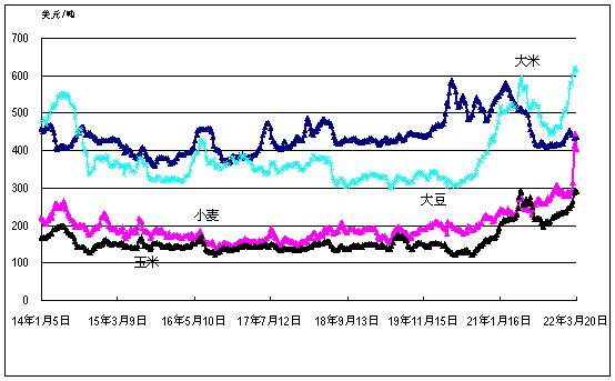 国际大宗农产品周均价格走势图(2014年1月至今)