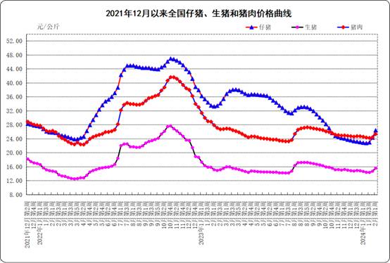 生猪产品价格。全国仔猪平均价格26.42元/公斤,比前一周上涨8.7%,同比下跌20.5%。河南、陕西、山东、河北、宁夏等28个省份仔猪价格上涨,上海仔猪价格下跌。西北地区价格较高,为28.11元/公斤;西南地区价格较低,为24.04元/公斤。全国生猪平均价格15.56元/公斤,比前一周上涨5.8%,同比上涨2.8%。全国30个监测省份生猪价格全部上涨。华东地区价格较高,为16.42元/公斤;东北地区价格较低,为14.67元/公斤。全国猪肉平均价格25.32元/公斤,比前一周上涨3.6%,同比下跌9.1%。全国30个监测省份猪肉价格全部上涨。华南地区价格较高,为27.77元/公斤;东北地区价格较低,为21.59元/公斤。