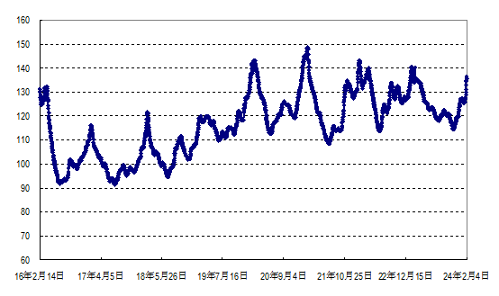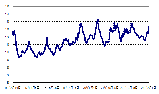 据农业农村部监测,2024年第5周(2024年1月29日—2月4日,下同)“农产品批发价格200指数”为130.83(以2015年为100),比前一周升4.97个点,同比低4.14个点;“‘菜篮子’产品批发价格200指数”为132.77(以2015年为100),比前一周升5.79个点,同比低5.09个点。