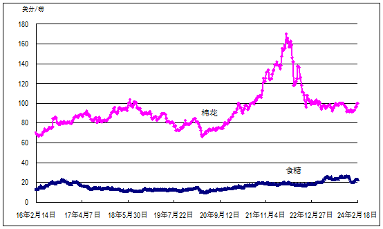 泰国100%B级和5%破碎率大米曼谷离岸周均价每吨分别为639美元和625美元,环比均跌3%,同比分别高27%和28%;美国芝加哥商品交易所玉米、小麦和大豆最近期货合约收盘周均价每吨分别为156美元、214美元和432美元,环比分别跌3%、2%和1%,同比分别低38%、25%和23%;国际糖料理事会原糖周均价每磅22.87美分(每吨504美元),环比跌1%,同比高13%。
