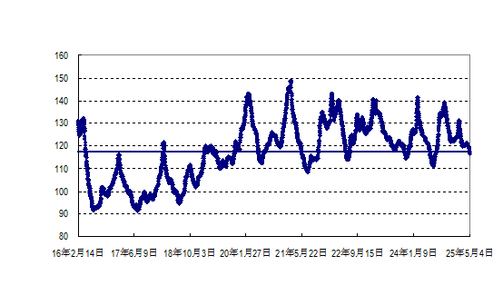 据农业农村部监测,2025年第18周(2025年4月28日—5月4日,下同)“农产品批发价格200指数”为116.95(以2015年为100),比前一周降1.50个点,同比低3.67个点;“‘菜篮子’产品批发价格指数”为117.65(以2015年为100),比前一周降1.75个点,同比低3.81个点。