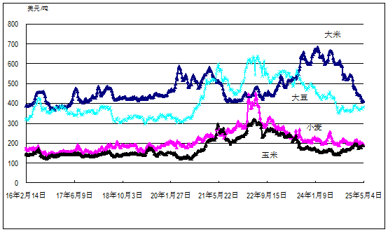 国际大宗农产品周均价格走势图(2016年2月至今)