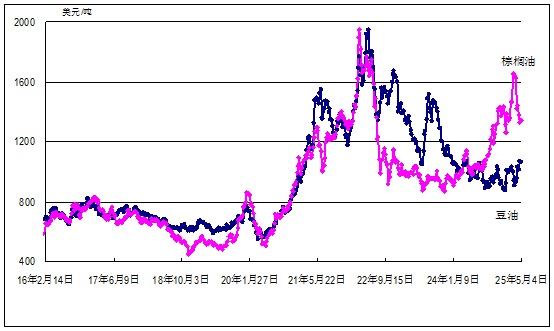 3.大米和豆油价格环比上涨。泰国100%B级和5%破碎率大米曼谷离岸周均价每吨分别为440美元和425美元,环比均涨7%,同比分别低28%和29%;美国芝加哥商品交易所豆油最近期货合约收盘周均价每吨为1083美元,环比涨2%,同比高15%。