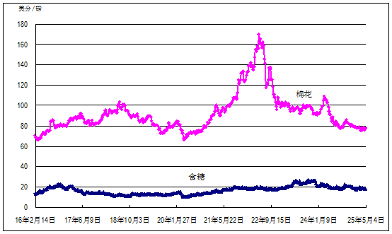 2.大豆和棉花价格环比基本持平。美国芝加哥商品交易所大豆最近期货合约收盘周均价每吨为383美元,环比持平,同比低10%;国际棉花价格指数(SM级)每磅77.75美分(每吨1714美元),环比基本持平,同比低15%。