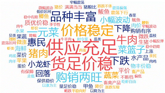 4.水果均价小幅上涨。重点监测的6种水果周均价每公斤7.69元,环比涨0.9%,同比高6.4%。分品种看,巨峰葡萄、香蕉和富士苹果周均价环比分别涨9.3%、1.3%和0.2%;菠萝、西瓜和鸭梨周均价环比分别跌5.8%、5.2%和3.1%。