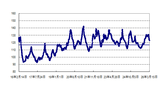 据农业农村部监测,2026年第11周(2026年3月9—15日,下同)“农产品批发价格200指数”为123.42(以2015年为100),比前一周降1.29个点,同比高4.15个点;“‘菜篮子’产品批发价格指数”为125.25(以2015年为100),比前一周降1.53个点,同比高4.88个点。